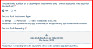 - If you wish to submit an audition on a second or third part or instrument, follow the instructions in the form for these extra submissions. Otherwise, skip these questions and click Submit Audition Recording(s).